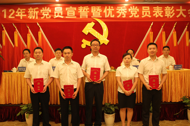 公司黨委書(shū)記楊國(guó)平作重要講話。他代表公司黨委向獲得優(yōu)秀黨員稱號(hào)的同志表示祝賀,向剛剛加入到黨的隊(duì)伍中來(lái)的新黨員表示熱烈的歡迎。楊國(guó)平董事長(zhǎng)就創(chuàng)先爭(zhēng)優(yōu),進(jìn)一步加強(qiáng)黨組織建設(shè),促進(jìn)公司又好又快發(fā)展講了三點(diǎn)意見(jiàn):一是抓好創(chuàng)先爭(zhēng)優(yōu),促進(jìn)公司科學(xué)發(fā)展;二是加強(qiáng)黨員自身建設(shè),提升公司人才實(shí)力;三是加強(qiáng)黨風(fēng)廉政建設(shè),樹(shù)立黨員的良好形象。要求全體黨員以受到表彰的同志為榜樣,堅(jiān)持黨的根本宗旨,堅(jiān)持科學(xué)發(fā)展觀,振奮精神,同心同德,真抓實(shí)干,開(kāi)拓創(chuàng)新,以爭(zhēng)創(chuàng)一流的精神狀態(tài)和卓有成效的工作業(yè)績(jī)來(lái)促進(jìn)公司又好又快發(fā)展,為長(zhǎng)株潭“兩型社會(huì)”建設(shè)和湖南的發(fā)展貢獻(xiàn)新的更多力量,以優(yōu)異的業(yè)績(jī)向黨的十八大勝利召開(kāi)獻(xiàn)禮。